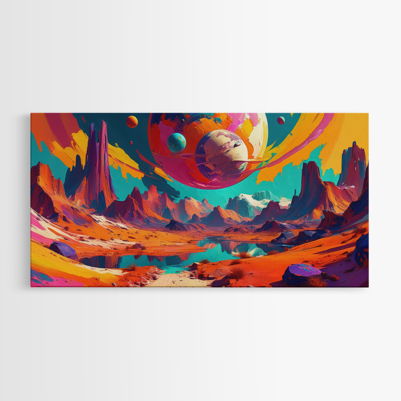 Χρωματική Έκρηξη σε Εξωγήινο Τοπίο με Πλανήτες